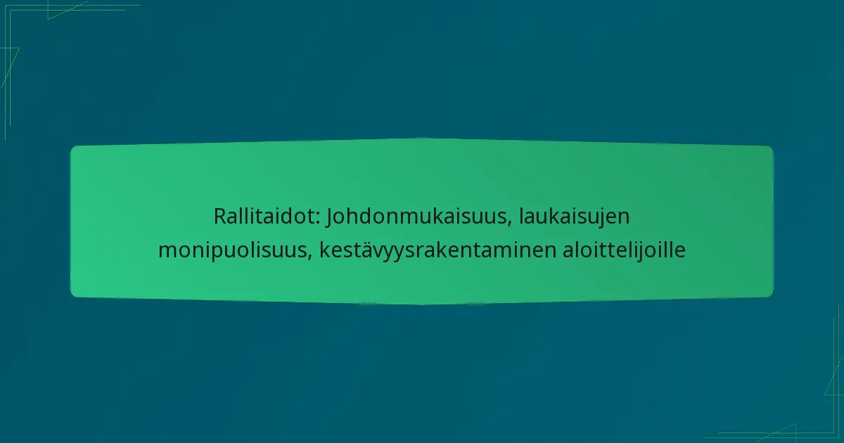 Mitkä ovat keskeiset osat rallitaidoissa aloittelijoille?