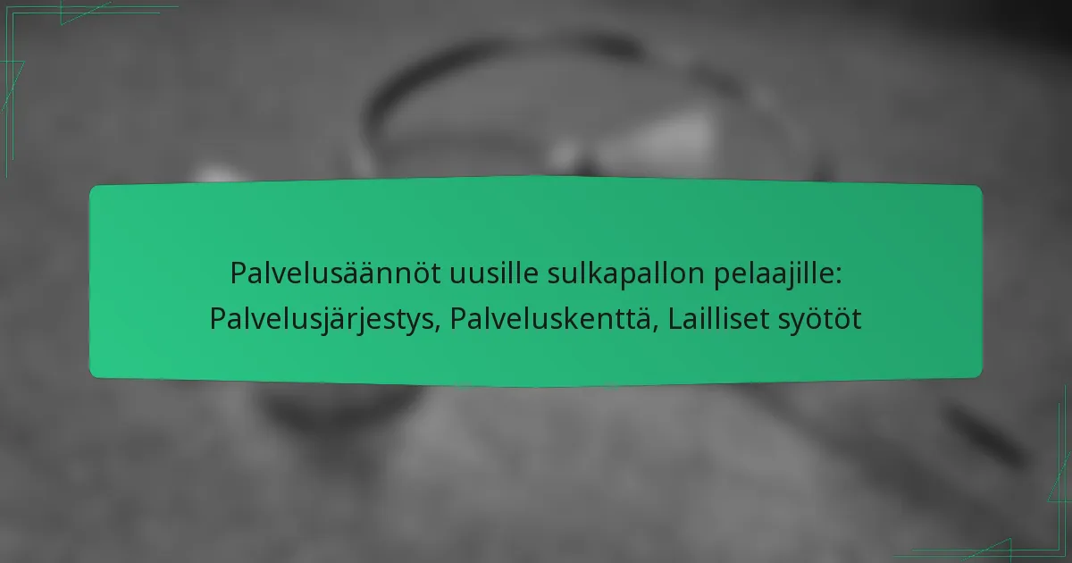 Uusille sulkapallon pelaajille pelin sujuvuuden ja reilun pelin varmistamiseksi on ratkaisevan tärkeää hallita syöttösäännöt. Tämä sisältää syöttöjärjestyksen, syöttöalueiden asettelun ja pelaajien sijoittumisen ymmärtämisen sekä laillisen syötön suorittamisen kriteerit. Näiden asioiden tuntemus auttaa pelaajia välttämään yleisiä virheitä ja parantaa heidän pelielämystään.