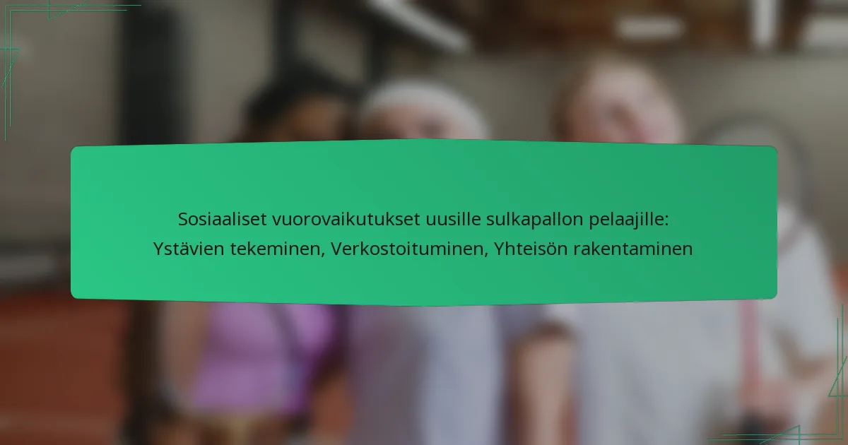Uudet sulkapallon pelaajat voivat solmia ystävyyksiä aktiivisesti vuorovaikuttamalla muiden pelaajien kanssa, liittymällä seuroihin ja osallistumalla sosiaalisiin tapahtumiin. Yhteyksien rakentaminen sulkapalloyhteisössä parantaa sekä sosiaalisia vuorovaikutuksia että taitojen kehittämistä.